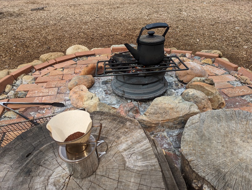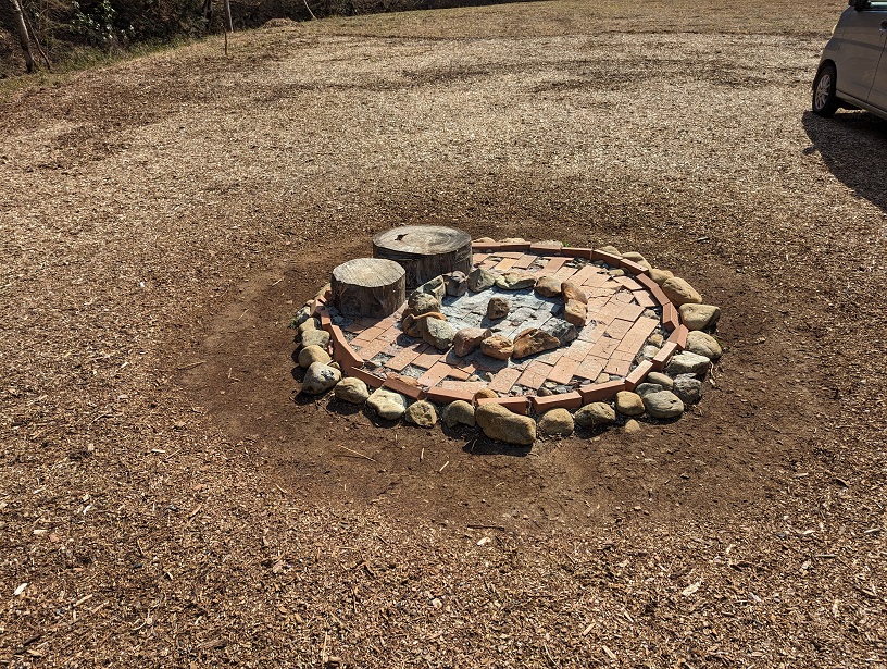 レンガのファイヤーピットは焚き火台を使わなくても直火で利用が可能です。