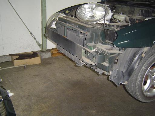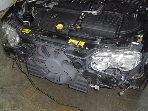 モーターを外すには、さらにライトとコアサポートのAssyを外します。