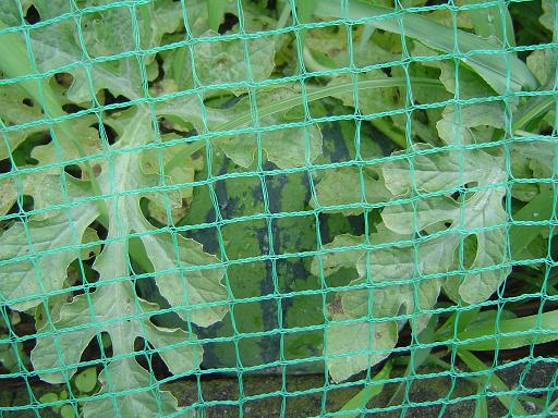 スイカも良く探さないと見えませんが、30センチ近い玉になっています。
