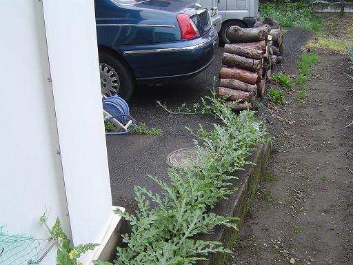 蔓の先端は駐車場まで伸びてきています。