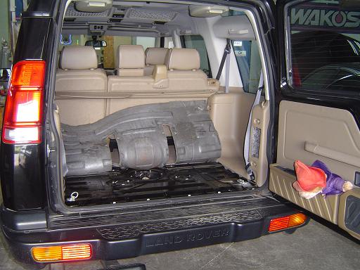 まず、現車の遮熱板を外して取り回しや形状、スペースを検討します。