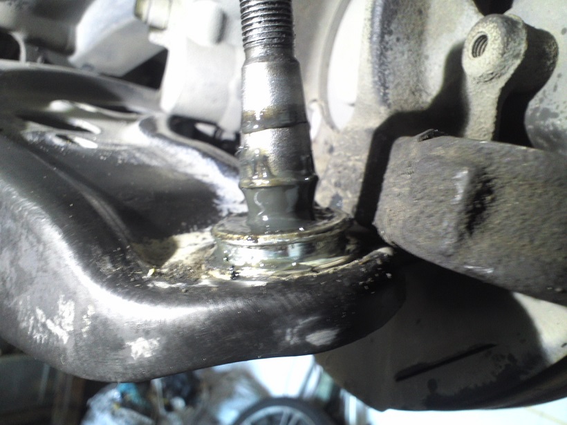 切れたブーツを外したロアーアームジョイントです。