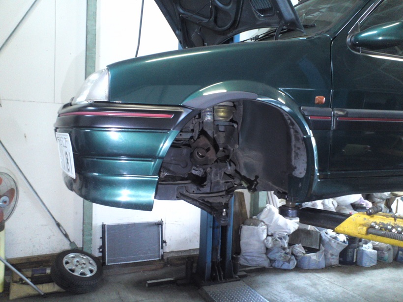 前回ヘッドライトをご購入頂いているので新しい物に交換しての車検整備です。