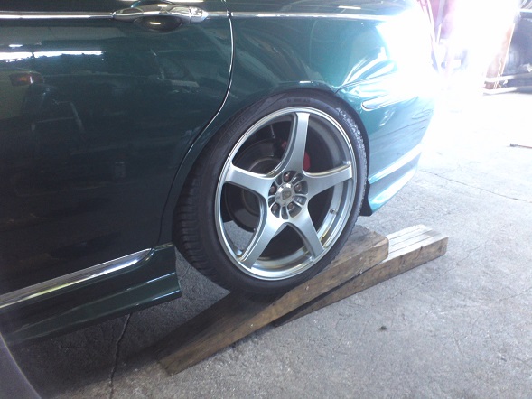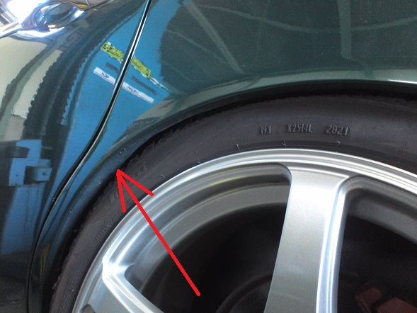 フェンダーのツラにタイヤを近づけて干渉する個所を確認