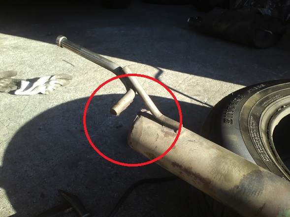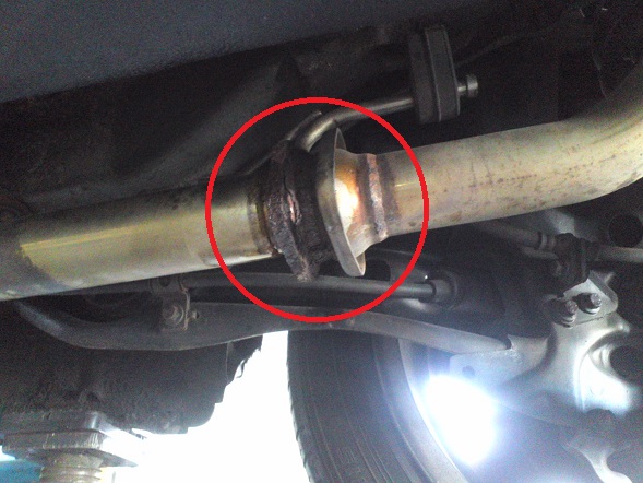 リヤマフラーとセンターマフラーパイプとのジョイントが