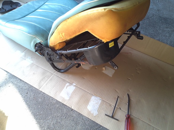 シートを一度分解してスプリングを交換しますが、そこそこ手間と
