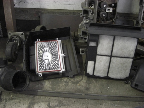 そこに蓋をするようにECUが取り付いています。吸入空気で冷却