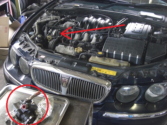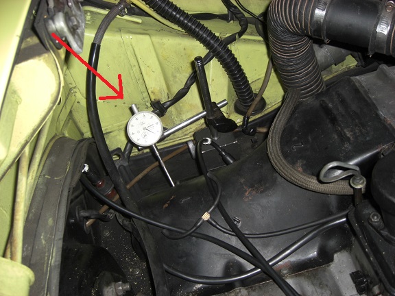 プラグサービスホールからゲージをピストン上部にあて上死点を出します。
