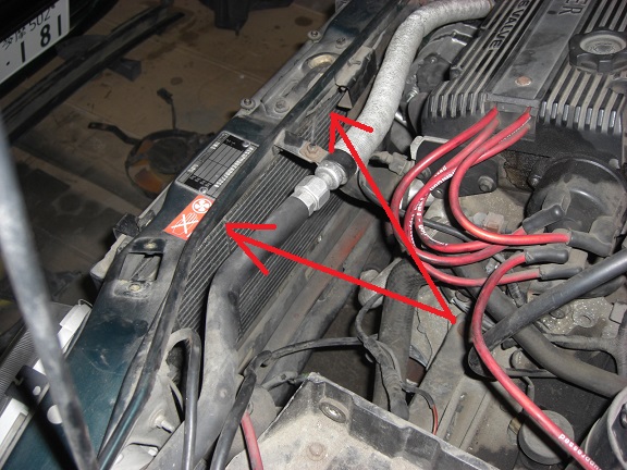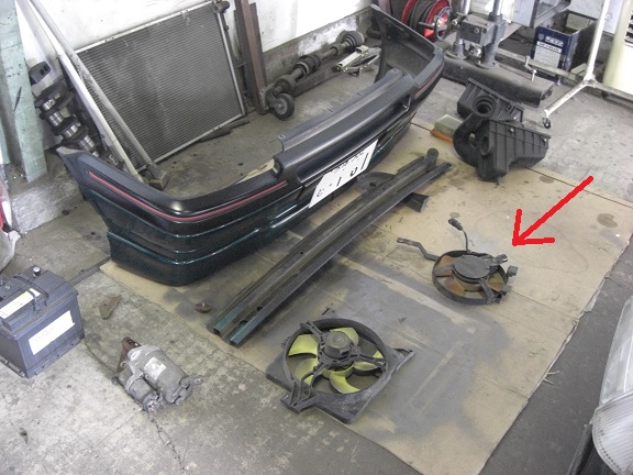 ラジエーター等にダメージをくわえないよう無理なく外します。