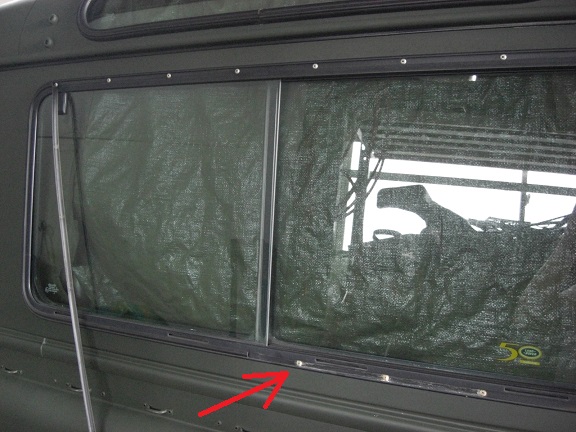 まずはクオーターガラス窓枠のリベットが腐食し切れてしまっています。