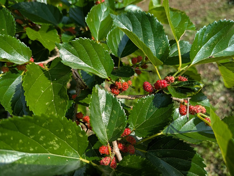 午前中は先週から目標にしてたマルベリー(桑の実)を収穫します。
