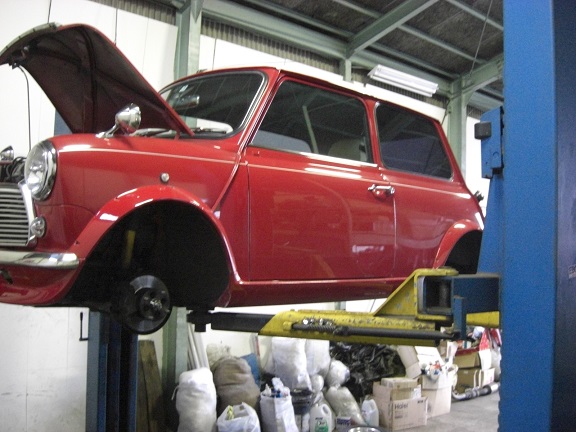 まずは車検でお預かり中のミニですが、フロントブレーキの