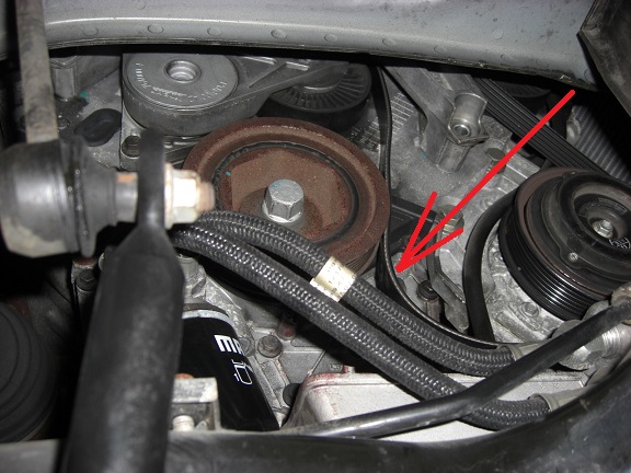 交換しますので、エンジン側のマウントも外しますが、ベルトをくぐす