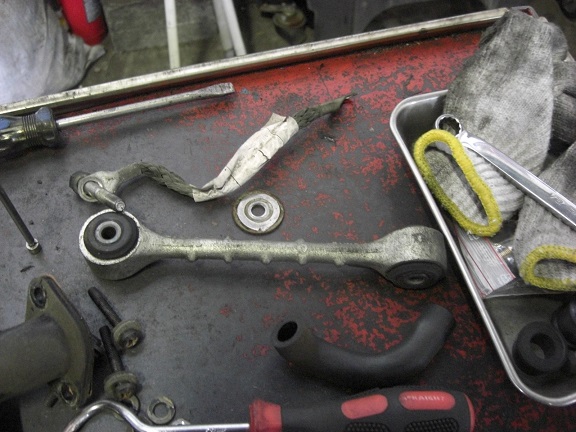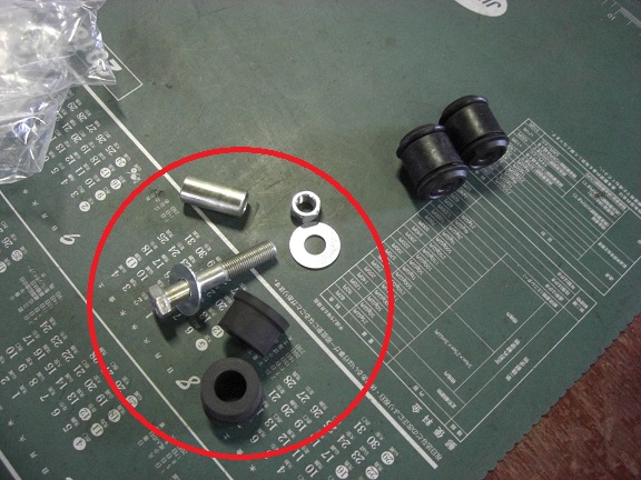 ボルトが折れ、ブッシュごと無くなりブラケットから外れています。