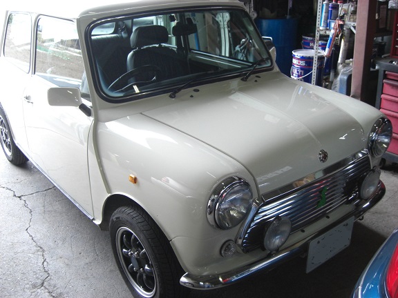 ペイントショップから戻ってきたミニは古い塗装を剥離して