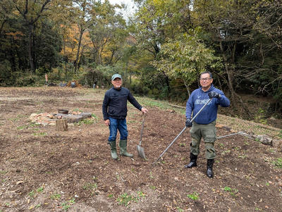 草刈りはもう落ち着いたのでこれからはイノの荒らした場所を整地する