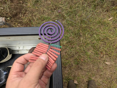 イノよけで効果抜群の犬毛を網にいれた毛ボールを吊るしてますが